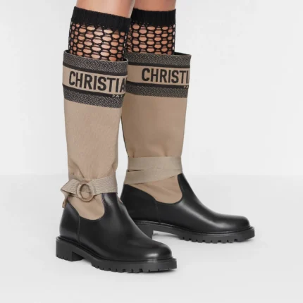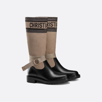 BOTTES DIOR EN RE MAJEUR AVEC TISSU TECHNIQUE TAUPE CHAUD EN NOIR