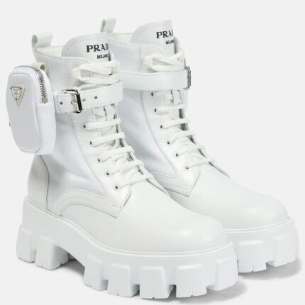 BOTTES DE COMBAT PRADA SPAZZOLATO AVEC POCHE EN BLANC