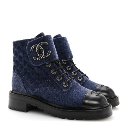 BOTTINES CHANEL 21A MATELASSEES A CHAINE EN NOIR/BLEU INDIGO