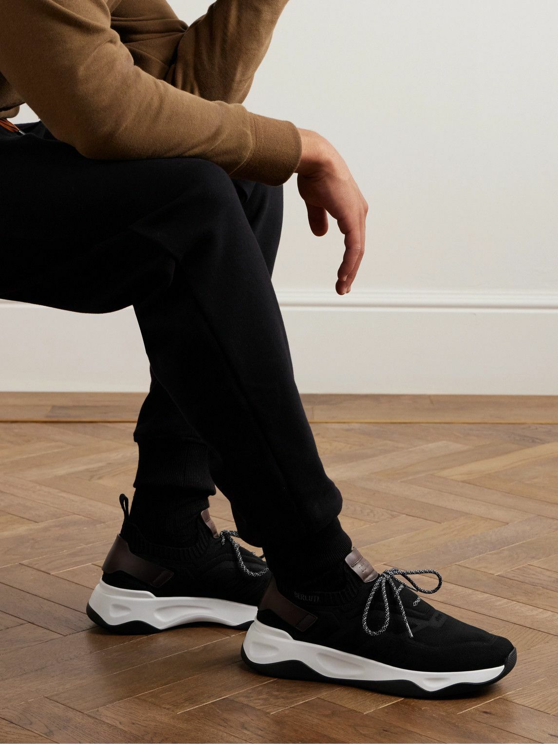 BASKETS BERLUTI SHADOW VENEZIA EN MAILLE STRETCH CUIR EN NOIR