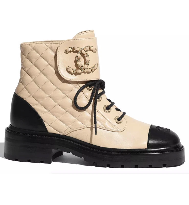 BOTTINES CHANEL MATELASSEES EN BEIGE FONCE