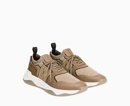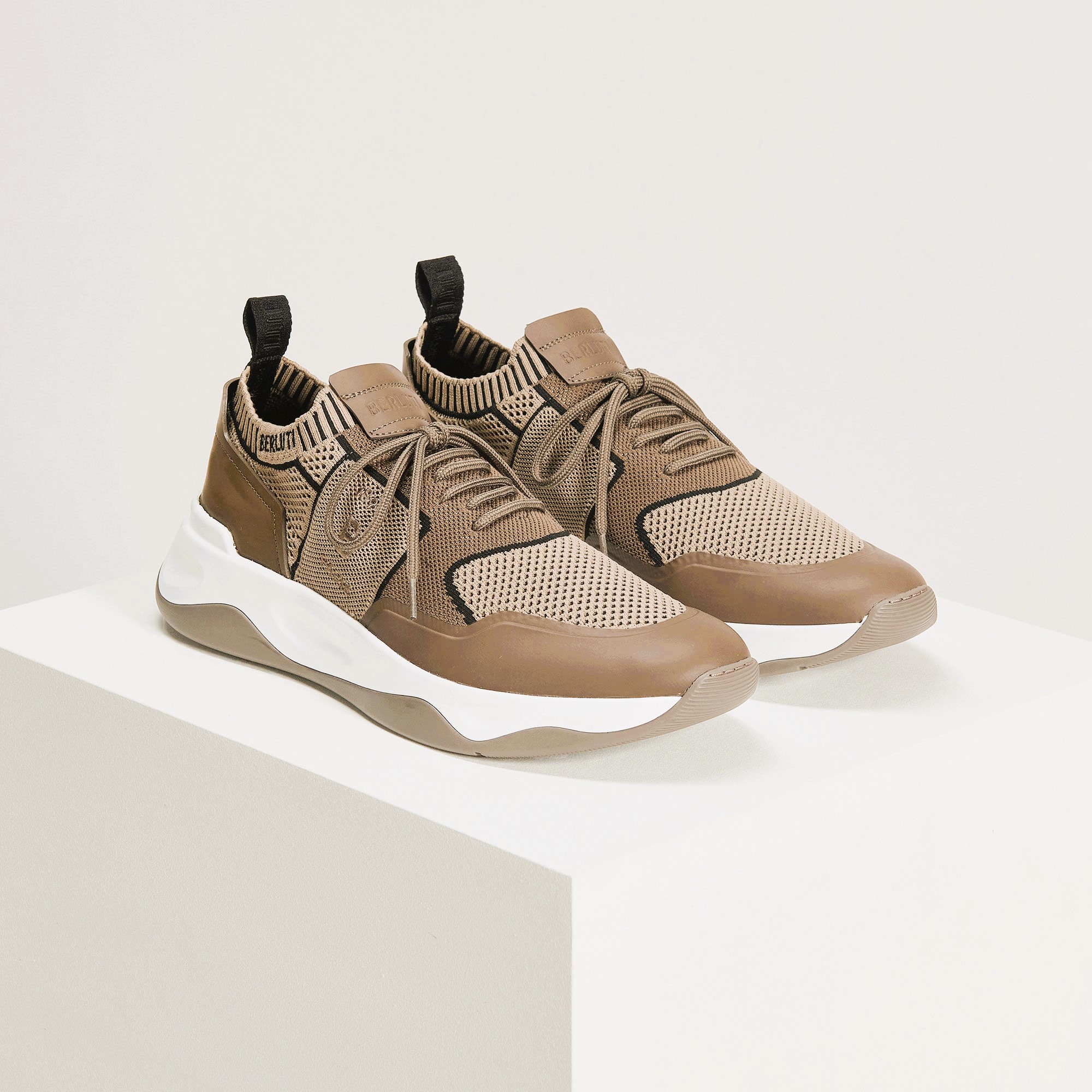 SNEAKER BERLUTI SHADOW EN MAILLE ET CUIR DE VEAU FILM GOMME EN LIGHT KAKI/BEIGE